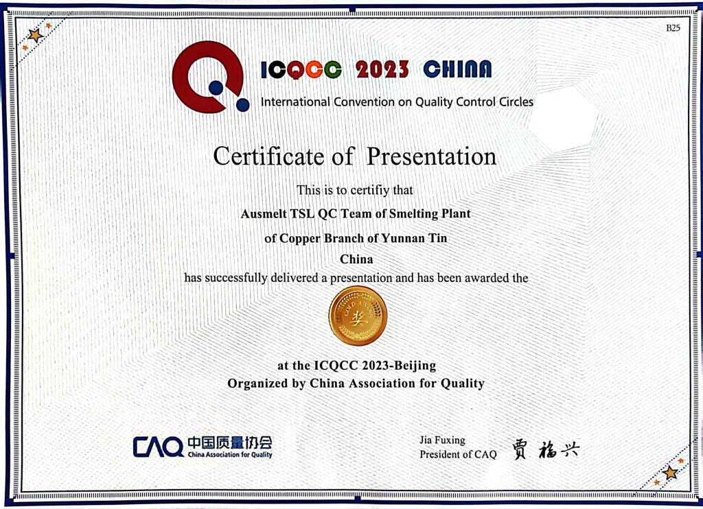 近日,2023年國際質量管理小組會議傳來了好消息,錫業股份銅業分公司熔煉車間頂吹QC小組《降低爐殼鋼水套堵塞次數》與錫業分公司煉渣車間煙化爐QC成果斬獲國際質量管理小組金獎。
