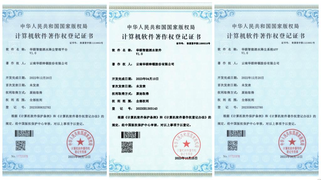 近日,云南華聯鋅銦股份有限公司“露天礦山粉塵監測系統及智能規劃灑水降塵研究”科研項目管理軟件“華聯智能灑水軟件V1.0”獲國家計算機軟件著作權登記。
