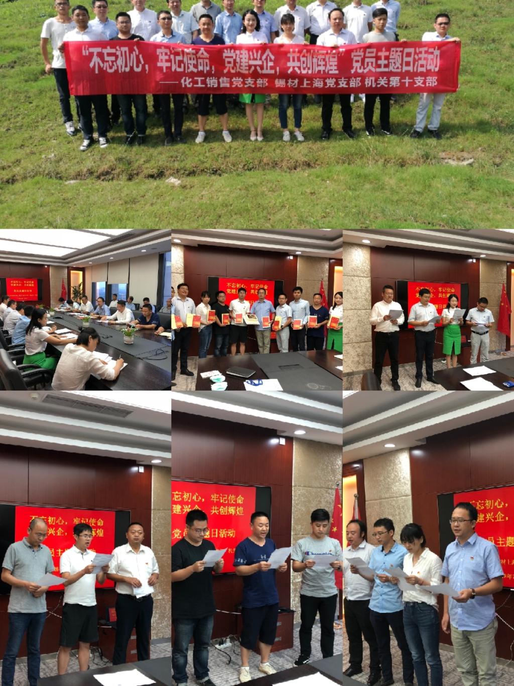 7月8日,云錫化工材料分公司銷售部黨支部(蘇州公司黨員)、錫材公司上海分公司黨支部、錫業股份機關第十黨支部(上海貿易公司黨支部)聯合開展了以“不忘初心,牢記使命,黨建興企,共創輝煌”為主題的黨員主題日系列活動。