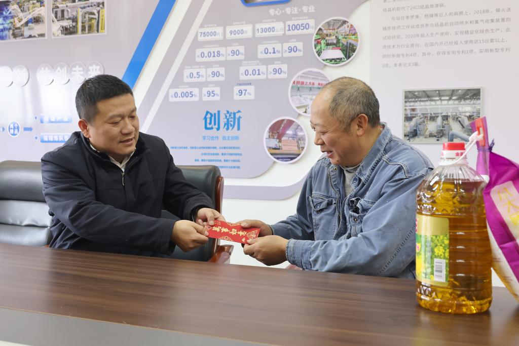 “過節(jié)好!提前給您和家人拜個年!”“現(xiàn)在身體怎么樣?”家里還有什么困難?“孩子還有幾年畢業(yè)?”……每到一處,聲聲問候,都如暖流般滋潤人心;句句關(guān)懷,盡顯情真意切。錫業(yè)股份領(lǐng)導(dǎo)班子成員與慰問對象及其家屬圍坐一團,親切交談,細致入微地詢問他們的身體狀況、生活情況等,細心聽取他們對公司發(fā)展的寶貴意見。公司領(lǐng)導(dǎo)感謝離休干部、老黨員為公司發(fā)展做出的貢獻,叮囑他們保重身體,享受健康生活;向辛勤付出和無私奉獻的勞模致以崇高敬意,希望他們繼續(xù)發(fā)揚模范帶頭作用,在技術(shù)創(chuàng)新、攻關(guān)創(chuàng)效方面發(fā)光發(fā)熱;鼓勵困難職工、困難黨員保持積極樂觀向上的精神狀態(tài),相信在企業(yè)大家庭的幫助下,日子會過得越來越好。