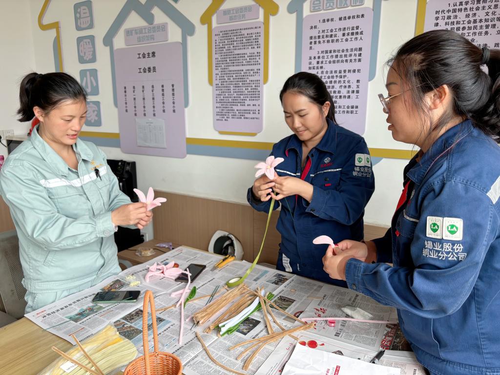 錫業分公司工會女工委開展“花漾女神 巧手造趣”、“指尖藝術 悅享時光”活動,集中學習黨的二十大及二十屆三中全會精神、《特別規定》等內容,創意制作黏土、團扇,感受手工藝獨特魅力,提升審美情趣。