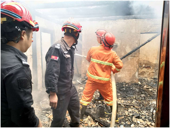 4月18日中午12時30分許,華聯鋅銦公司保衛部接到都龍鎮政府打來的滅火救援電話:都龍鎮街頭新加油站對面一處民宅發生大火。保衛部主任吳賢明立即指揮調度公司10名消防隊員及一輛消防車迅速趕到火災現場投入撲火救援工作中。